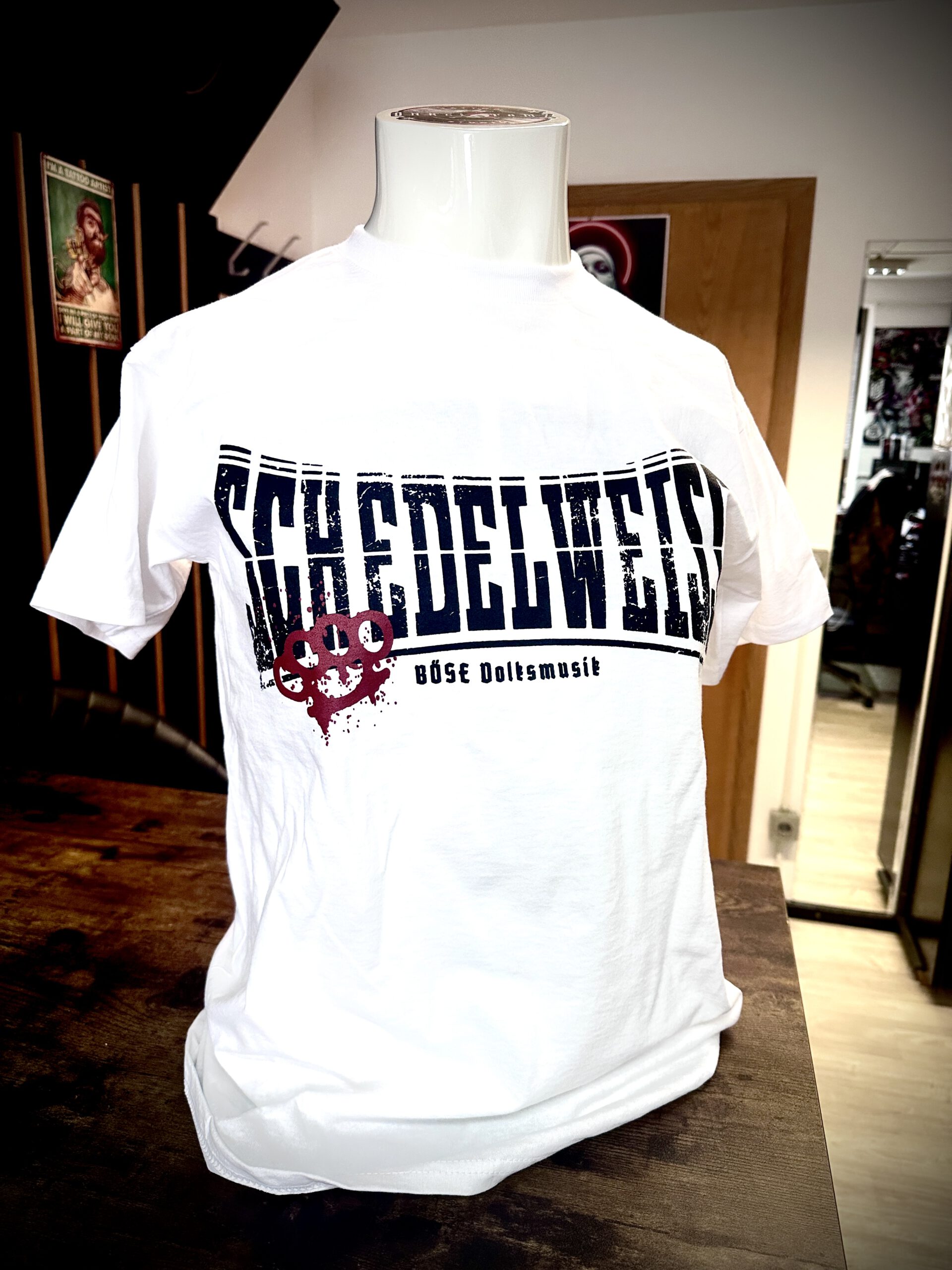 SEw Böse Volksmusik weiß Brustdruck vorne T-Shirt